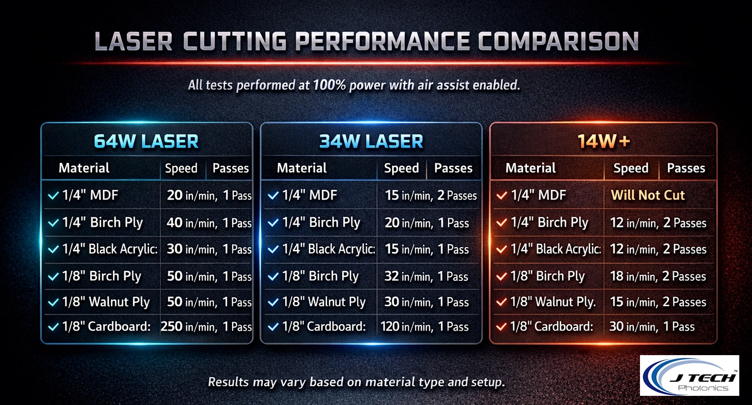 If your projects include frequent cutting — especially thicker materials — the 34W PRO or 64W PRO is where you’ll see real performance gains.