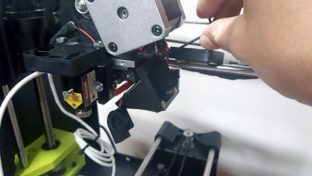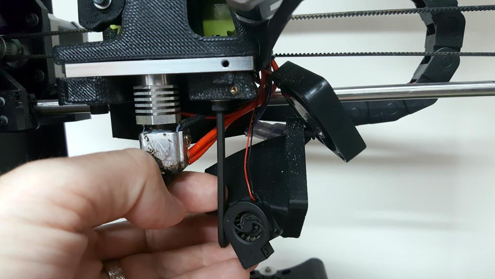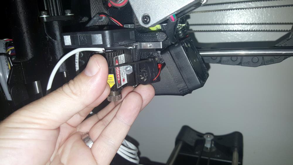 H: Put the small fan back carefully. It should fit behind the laser mount with the front right next to the extruder.