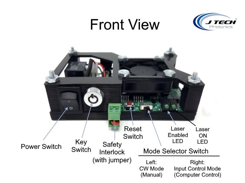 - Power Fault Protection – This one may seem like it is not needed, but hear us out. Consider your power goes out in your area where the laser is located. You were running your program and then everything is dark… Power doesn’t come back on for awhile… long enough for you to forget that the laser was left ON! You come back and are checking your laser and boom, the power is back on, right when you are looking straight at it. Well, don’t worry because the laser will be disabled whenever the power to the driver is lost. Press the reset button and you are back in action!