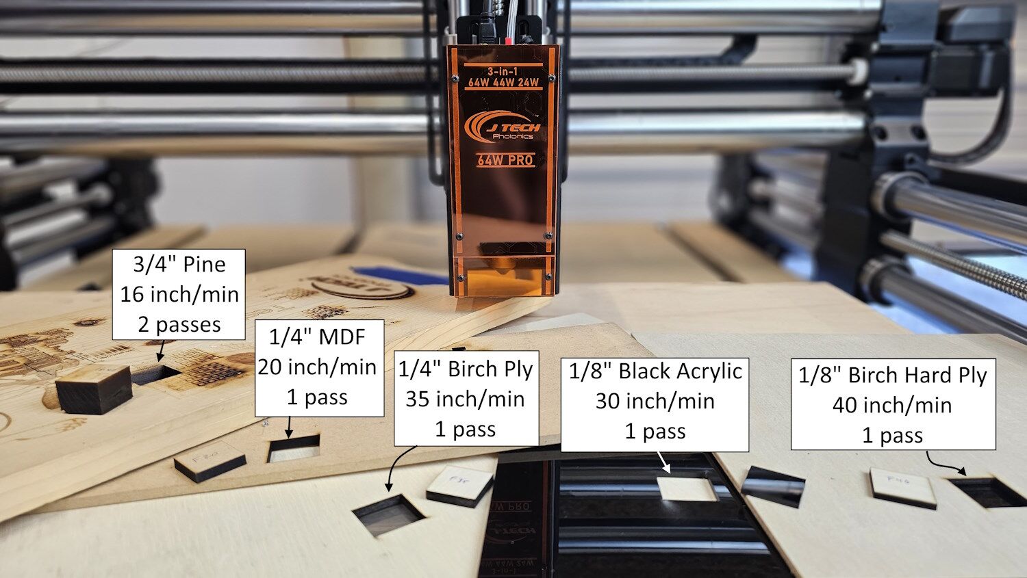 Upgrading from lower-power J Tech lasers to professional-level cutting speed and depth (contact sales to see if you qualify)