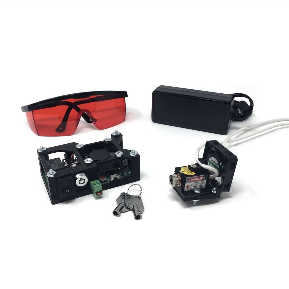 This kit is a combination of the new 500mW 405nm Laser Diode Component and the 2.5 Amp matching safety compliant laser driver kit with a 12V adapter. We now include a pair of safety goggles with every kit as well! This kit includes everything you need to get your laser up and running in your product or project. The kit includes: