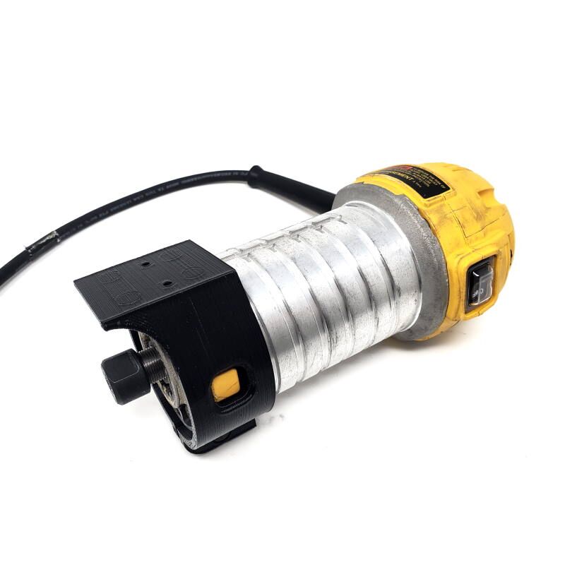 This mount attaches to the bottom of the router giving a strong connection that does not require a secondary mounting position. Perfect for Z axis upgraded machines.