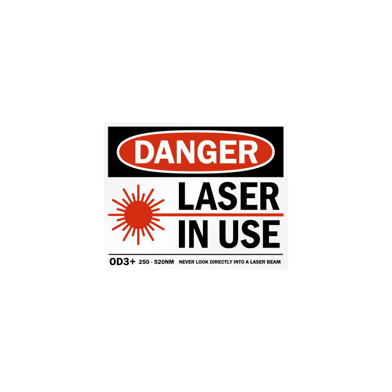 “Laser in Use” sticker we ship with every shielding piece and laser kit. Buy extras to be extra safe.