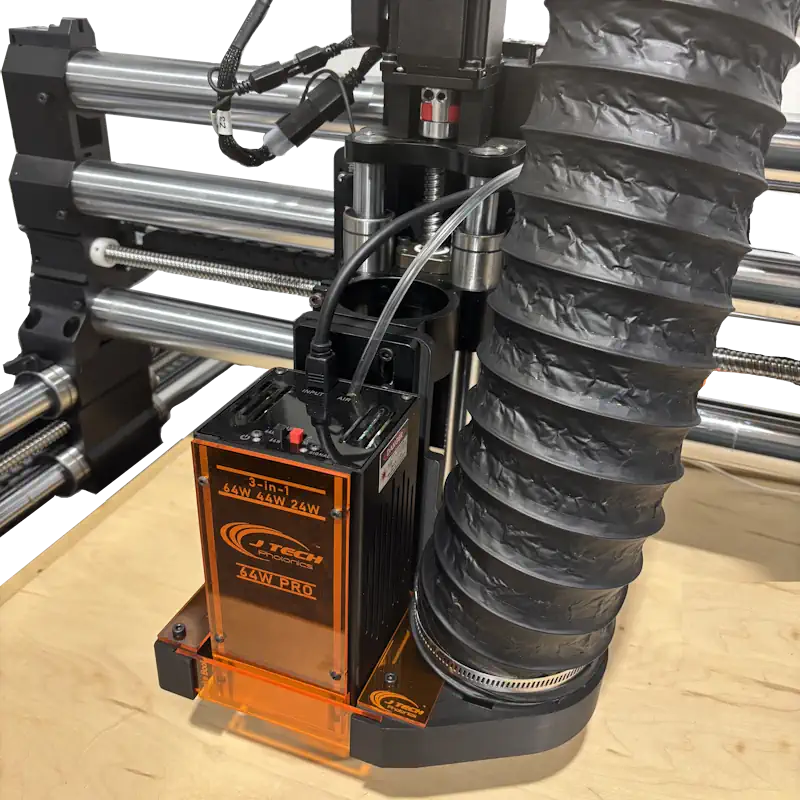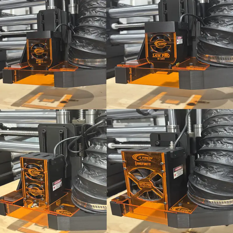 Like a dust shoe for a CNC, SmokeBoot™ wraps snugly around your laser module. But instead of catching dust, it connects to a fan and filter system to capture smoke right at the source. Designed specifically for engraving, it removes smoke the moment it forms—protecting your optics, preserving material clarity, and improving the air you breathe.